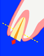 エクストリュージョン法は、歯茎に埋もれている歯を露出させ、その歯を土台にして被せ物をする方法です。土台の歯が本物の歯ですので、入れ歯よりもはるかに噛み心地が良くなります。